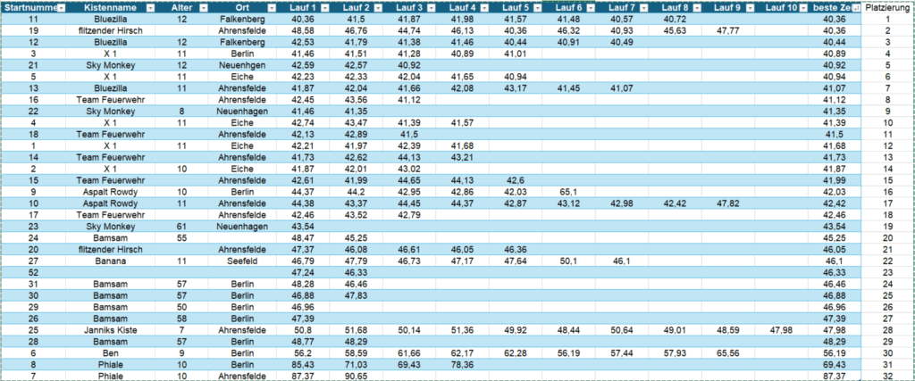 Nachfolgend veröffentlichen wir die Rennergebnisse: